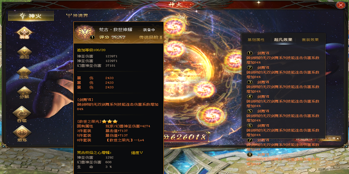 - 更新95级新神火及套装效果,支持荒古熔炼。